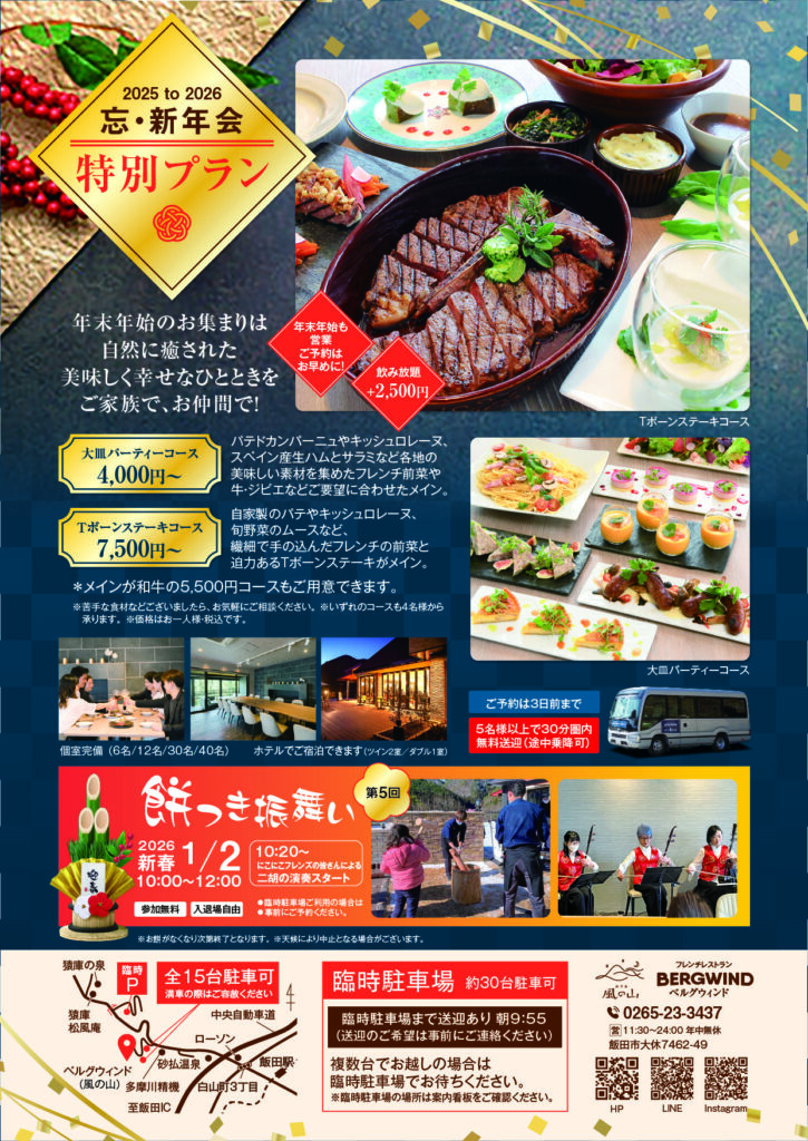 年末年始のお集まりは、ホテル風の山「BERGWIND(ベルグウィンド)」で。